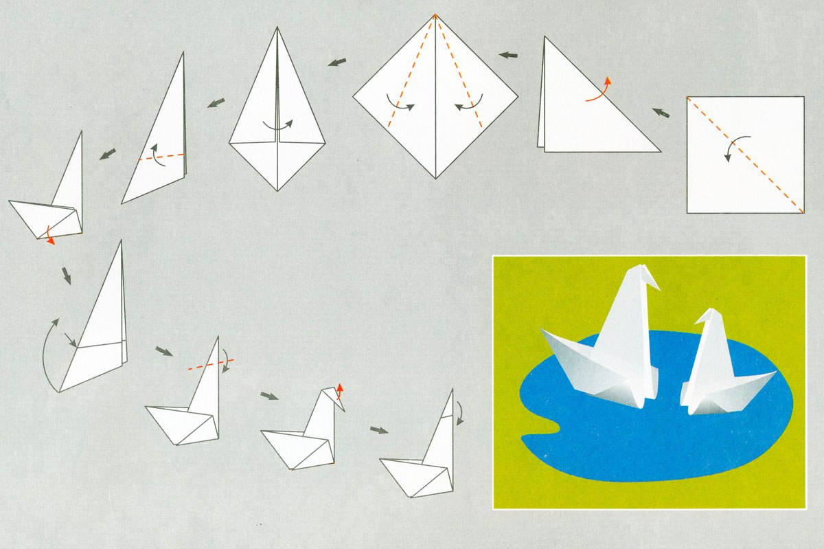 2. З квадратів склади качечок, користуючись малюнками-схемами і допоміжними лініями на заготовках.