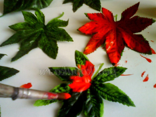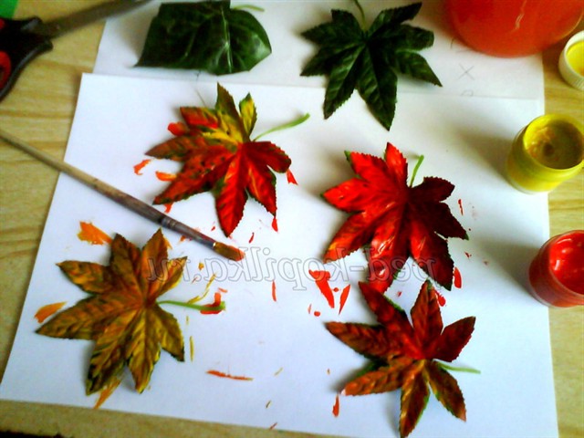 Осінні листочки ми робимо з штучних зелених за допомогою фарби