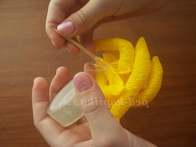 Навколо серединки прикріплюємо пелюстки майбутнього квітки (приклеїти на клей ПВА або закріпити нитками, щоб міцно трималося.)
