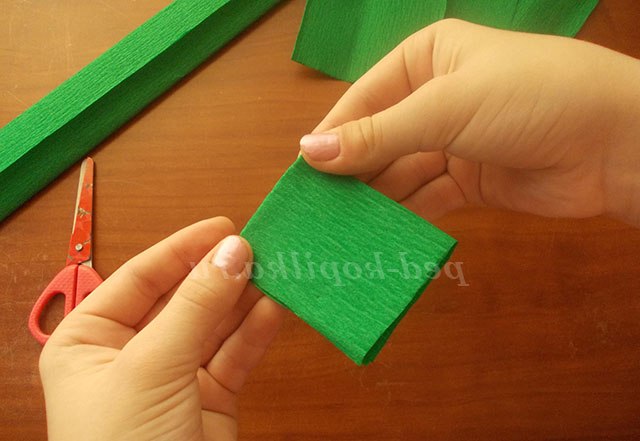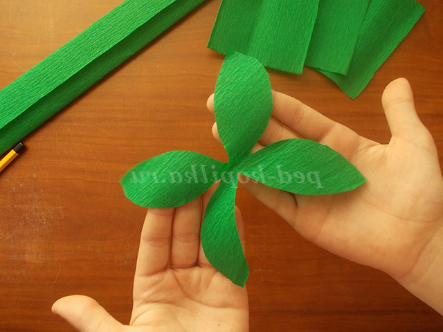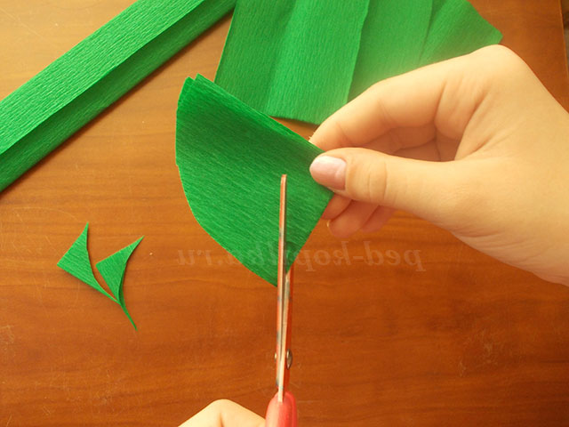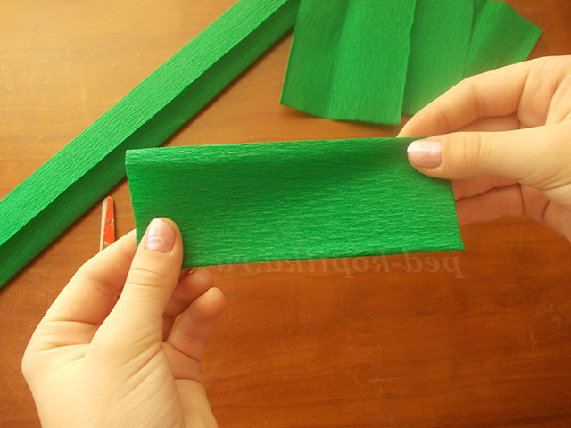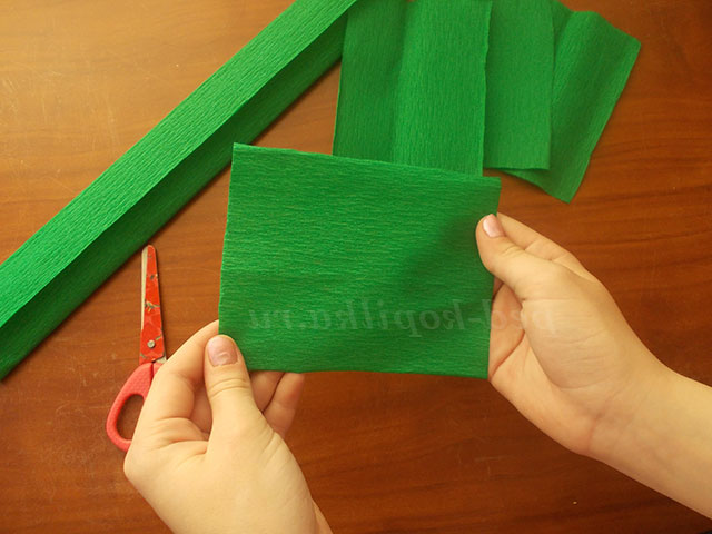 Другий етап, приступаємо до виготовлення листочків із зеленої гофрованого паперу.