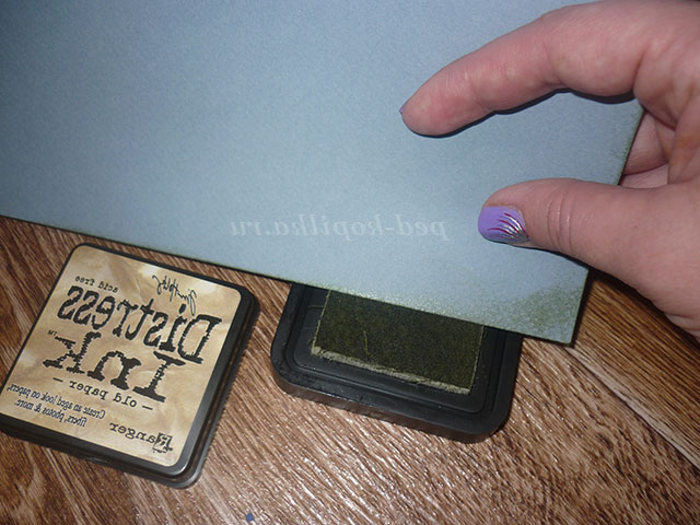 Фон для картини попередньо «состарим» чорнилами для штампів.