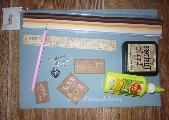 Давайте виготовимо картину, поєднавши дві техніки. У техніці скрапбукінгу на нашій картині буде фон і дрібні прикраси, а в техніці квіллінг, у нас буде великий квітка.