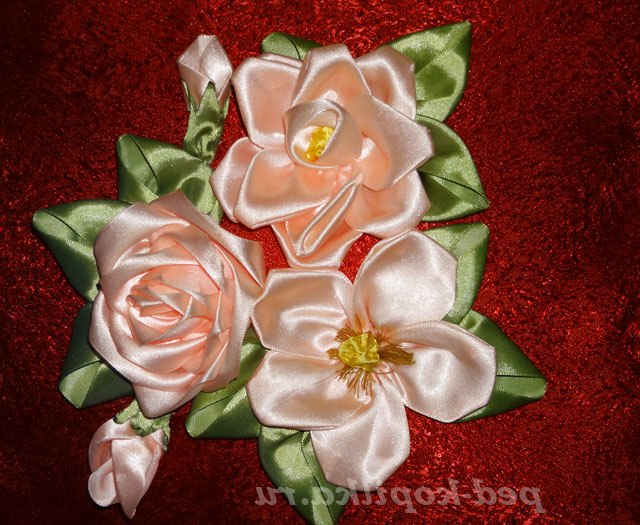 А якщо вам сподобаються ось такі троянди з атласних стрічок, то майстер-клас з їх виготовлення можна подивитися ось тут