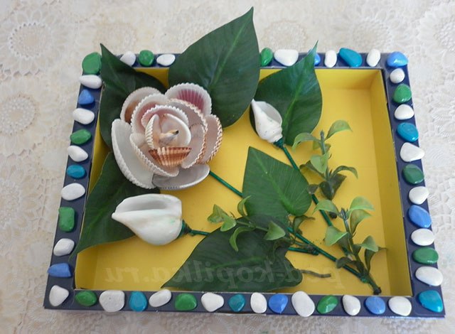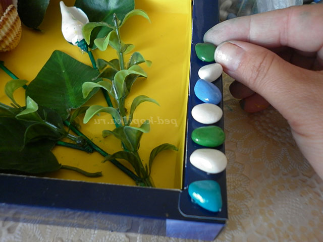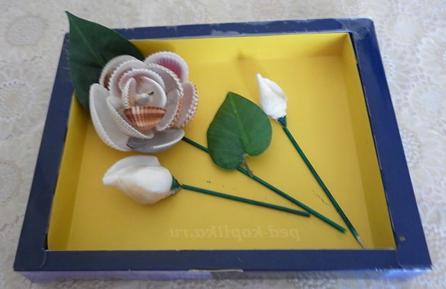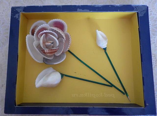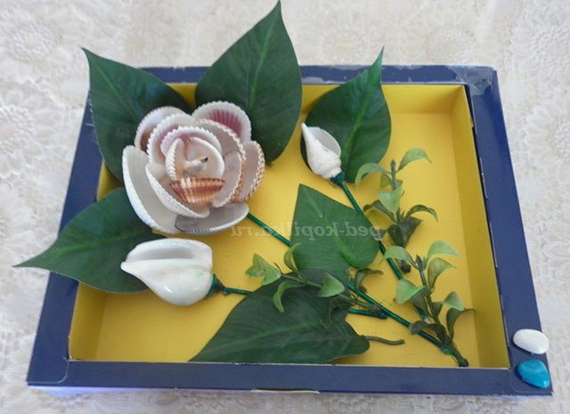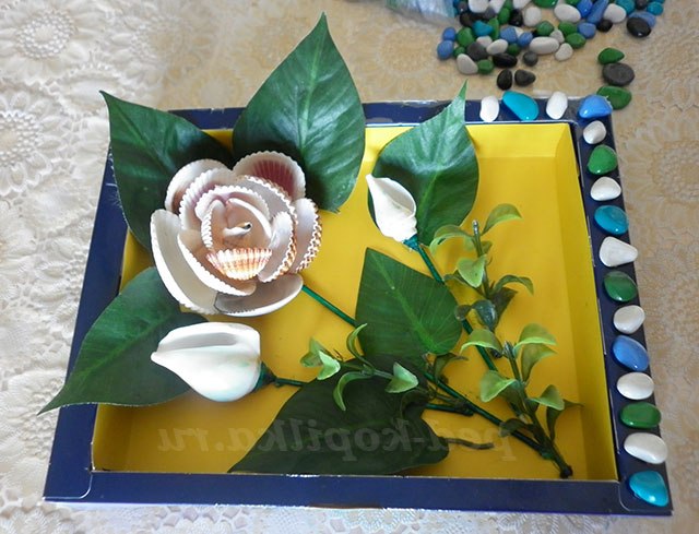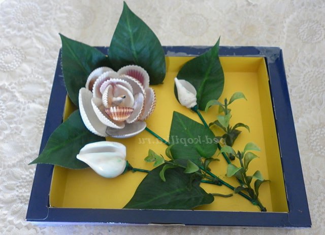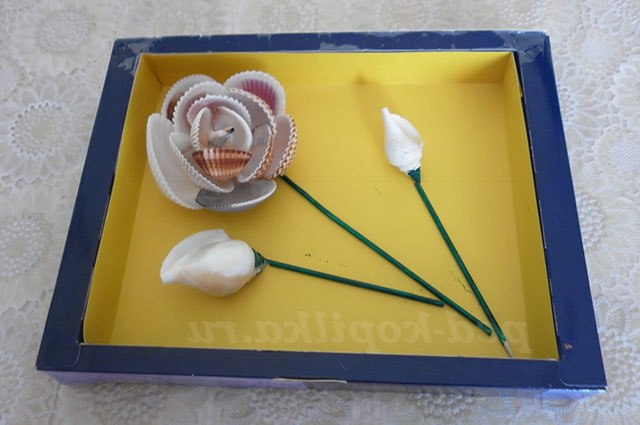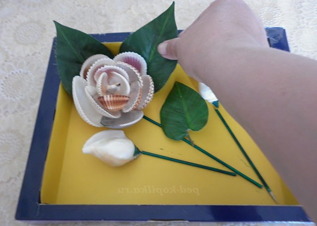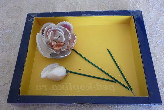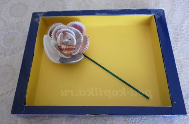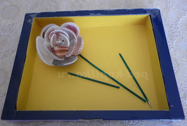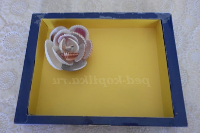 Візьміть коробку з-під цукерок і перенесіть туди троянду, приклейте її на клей.