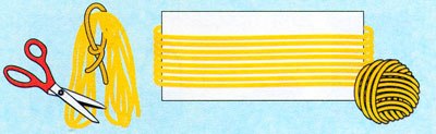 2. Намотуємо пряжу на картон. Знімаємо пряжу, середину перев'язуємо ниткою, кінці обрізаємо.