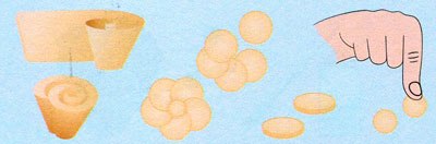 2. Для ручки розкачуємо дві «ковбаски» і скручуємо.