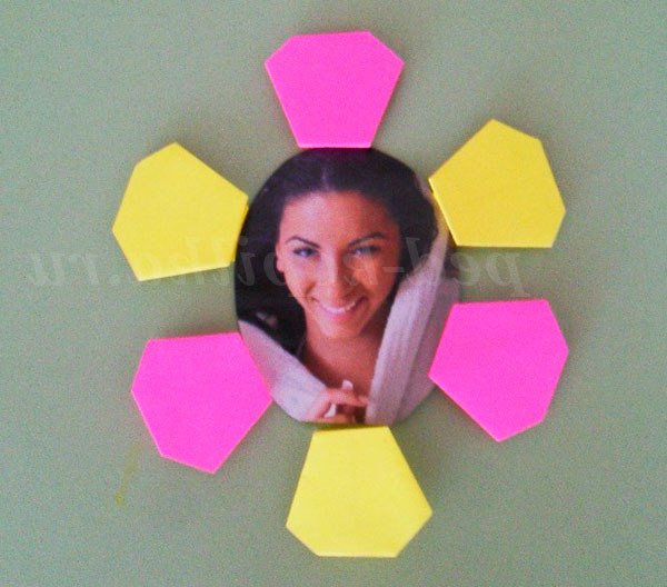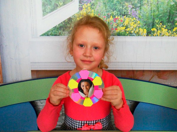 6 крок: приклеїти пелюстки до фото, фото на картонний круг, коло - на компакт-диск.