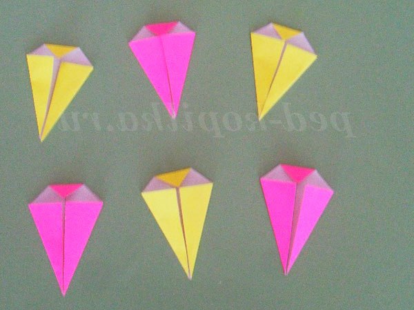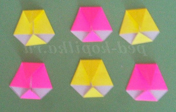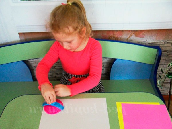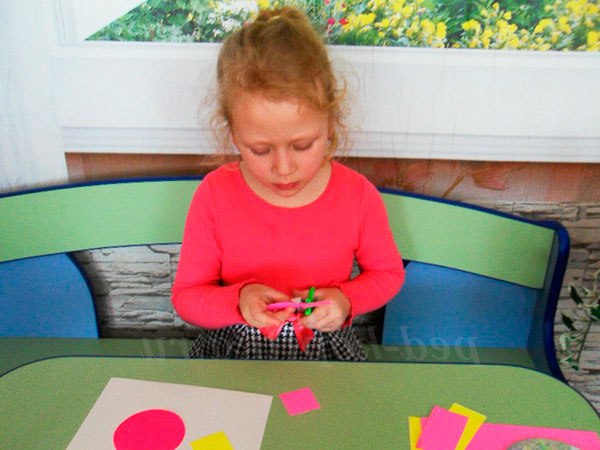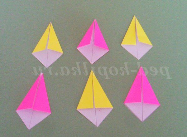4 крок: з кольорового паперу вирізати по 3 квадратика (5х5см) різного кольору.