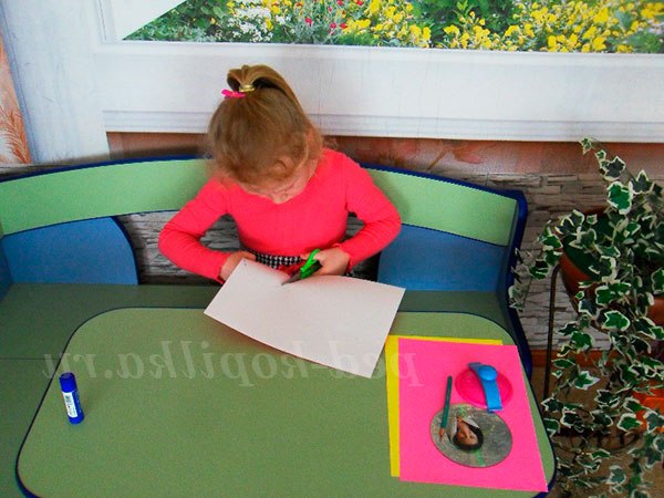 2 крок: за шаблоном намалювати на кольоровому картоні коло меншого діаметру, ніж компакт-диск.