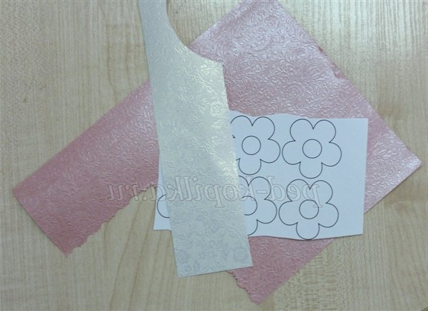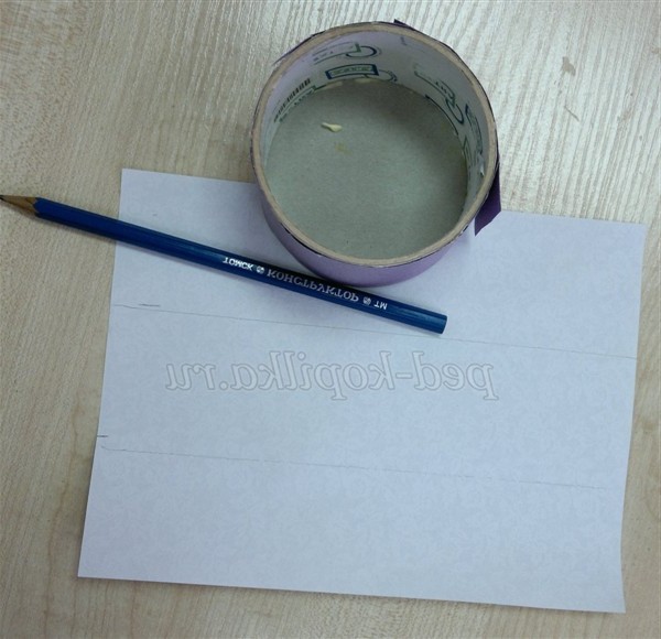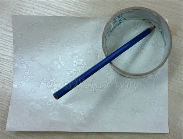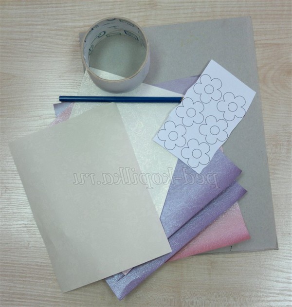 Матеріали та інструменти: картон, основа від скотчу, кольорова тесненная папір постільних тонів, клей, ножиці, олівець.