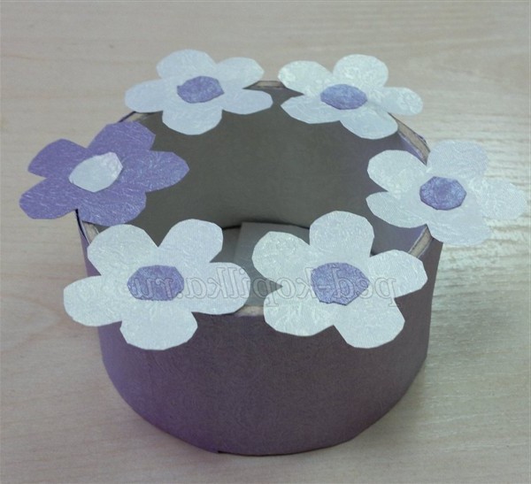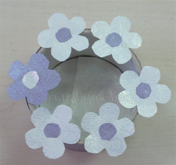 5) Обклеюємо з двох сторін коробочку і приклеюємо на дно кольоровий папір.