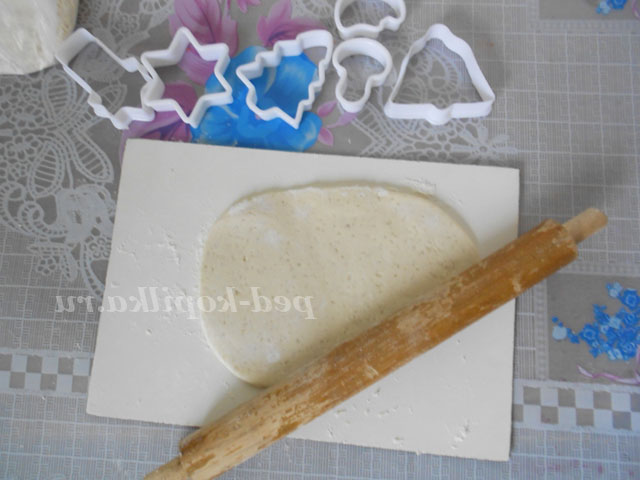 1. солоне тісто (склянка борошна, 2 столові ложки дрібної солі, 2 яєчних білка, десертна ложка рослинної олії замісити, скласти в поліетиленовий мішок і прибрати в холодильник на 1 годину);