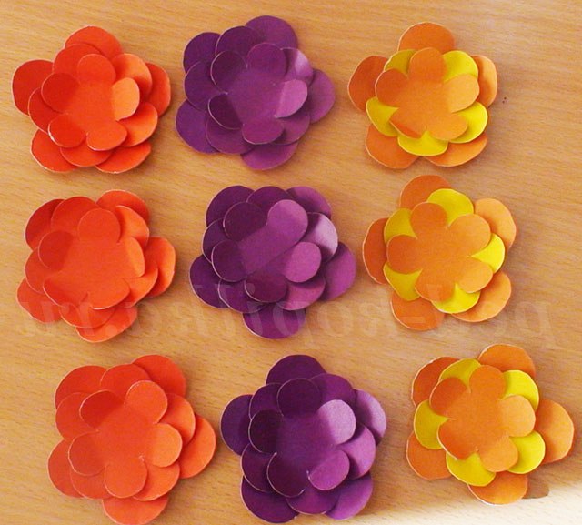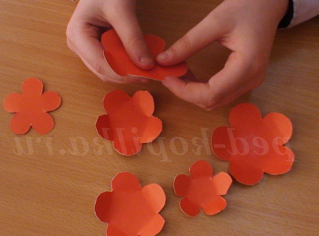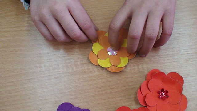 Потім на кожний великий квіточка наклеюємо середній квітка, а на середній квіточка наклеюємо маленький.
