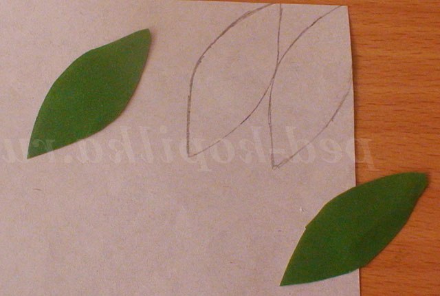 3. На зеленій папері малюємо листочки і вирізаємо.
