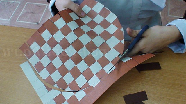 6. На полотні з смуг малюємо контур кошика, і вирізаємо.