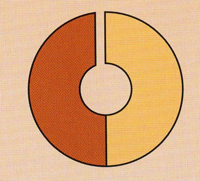 2. Виріжте з жовтого паперу 2 кола діаметром 3 і 6 см, складіть їх навпіл і розріжте.