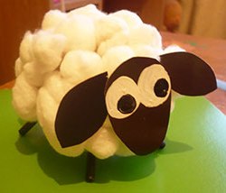Влітку діти часто бувають за містом, тому їм можна запропонувати зробити ось таку вівцю, яка пасеться на лузі. |