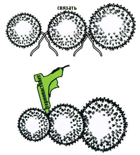 3. Зв'яжіть помпони один з одним або склейте між собою за допомогою термопістолети. Обріжте виступаючі кінці ниток.