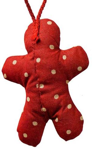 Пришийте шнурок з задньої сторони готового імбирного чоловічка. Якщо хочете, замість шнурка можете використовувати стрічку або тасьму.