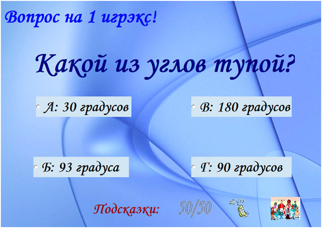 - 50/50 - прибираються два варіанти відповідей;
