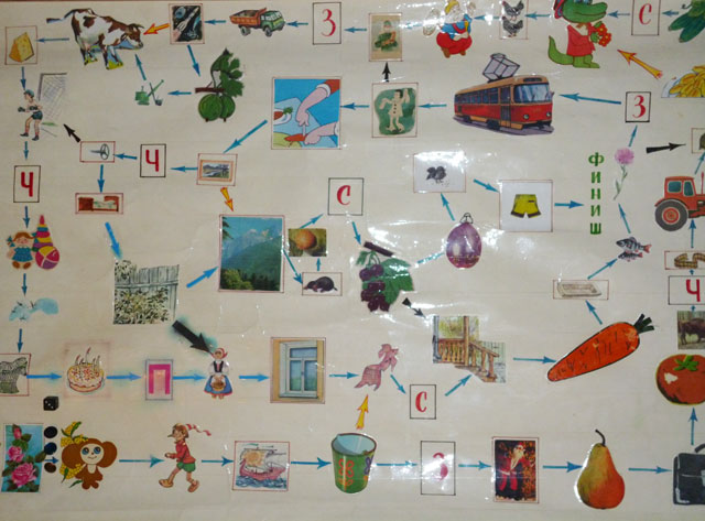 По ігровому полю у певній черговості розташовані зображення предметів, у назвах яких є звук [р].