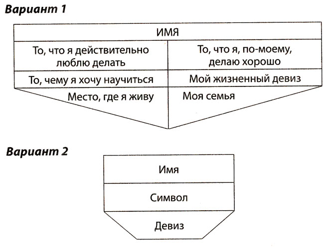 Також ви можете скористатися таблицею-гербом. Форма таблиці може бути різноманітною, за бажанням автора. При її заповненні використовуйте будь-який колір, символ, різні способи написання тексту і т. д. (додаток 2).