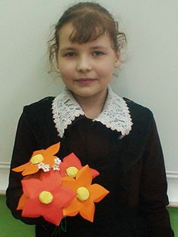 Учасник №77 Об'ємна аплікація "Квіти для матусі" Автори: Руслана Брежнєва Вік: 7 років Педагог: Фортова Надія Степанівна, керівник гуртка |
