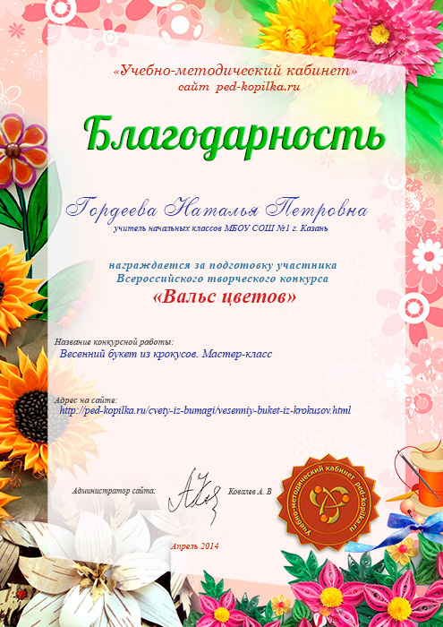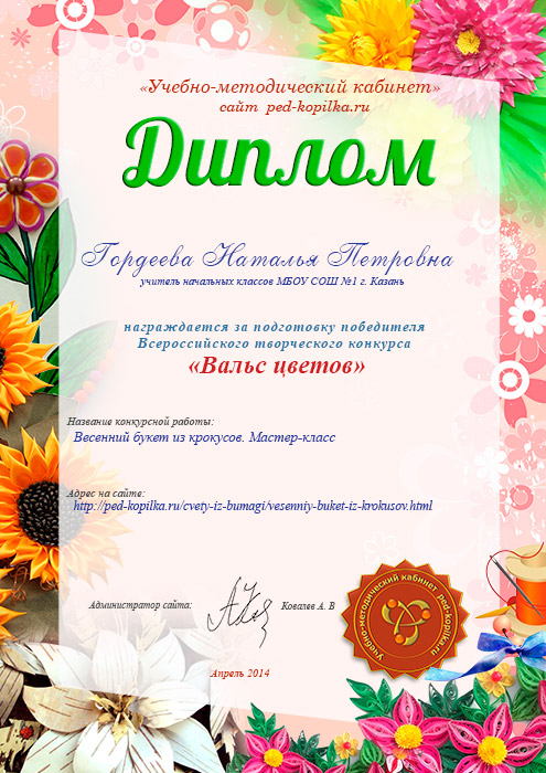 Учасник №30 Майстер-клас: квіти з паперу "Весняний букет" Автор: Бузилова Олена Аргадиевна, вихователь, МБДОУ дитячий сад загальнорозвиваючого виду № 79, м.томськ, Томська область |