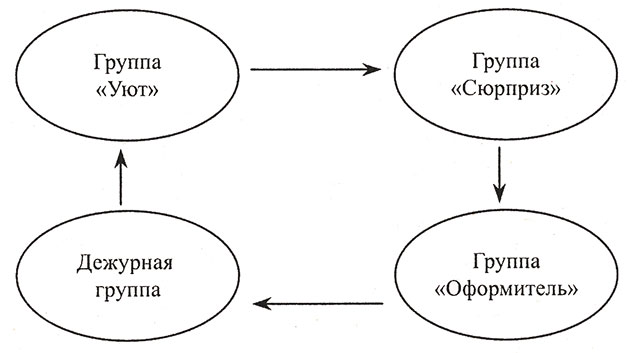 Група «Дозвілля». Ця група допомагає вожатим організовувати різні загонові заходи, готується до вечірніх общелагерным заходів. Заохочуйте цікаві ідеї хлопців і допомагайте в їх реалізації.