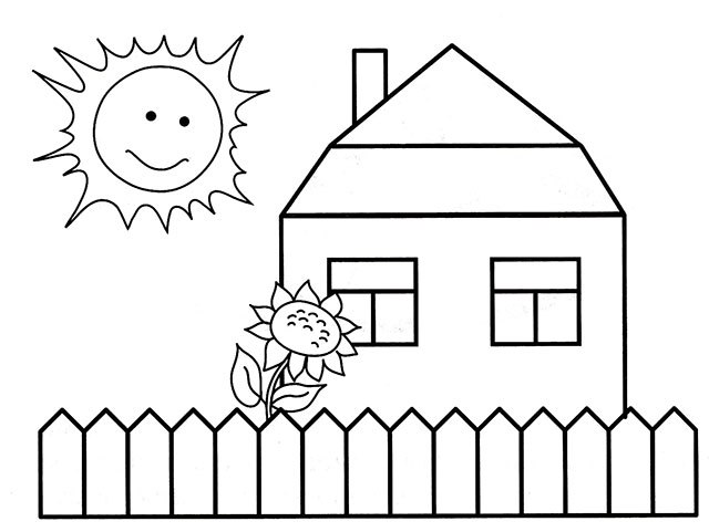 Літні канікули ми з сестричкою проводимо на дачі. У нас є невеликий, але затишний будиночок за містом. Коли вранці піднімається яскраве помаранчеве сонце, наш будиночок виглядає дуже життєрадісно. Папа пофарбував стіни синьою фарбою, як вода в річці, в якій ми купаємося. На коричневою даху знаходиться чорна труба, з якої йде дим, якщо в будинку в прохолодні дні топиться піч. Але це буває рідко, влітку сонечко нагріває будинок так, що вікна майже завжди відкриті. Як відображення сонечка, біля будинку росте величезний соняшник з жовтими пелюстками і коричневою серединкою, посипаної насінням. Він махає нам великими зеленими листками, коли на вулиці розігрується вітерець. Нещодавно ми допомагали татові по господарству, він доручив нам пофарбувати новий паркан в такий же колір, як дах нашого будинку. Це у нас чудово вийшло, правда, і самі себе ми трохи пофарбували. Розфарбуй малюнок відповідно до опису, і ти побачиш, як виглядає наша дача.