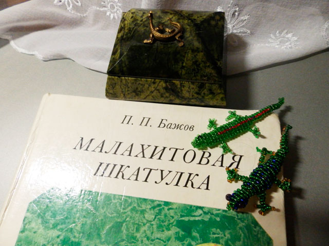 Реквізит: малахітова шкатулка, костюм Хазяйки Мідної Гори, сувеніри ящірок.