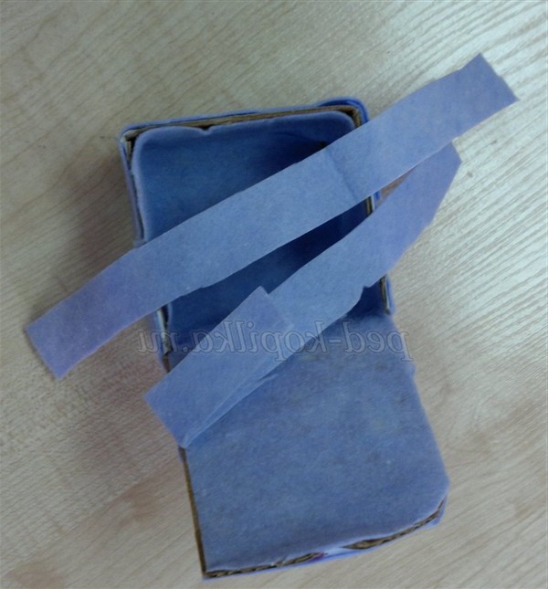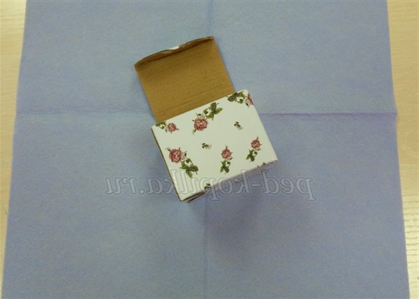 1) Беремо коробку і обклеюємо її блакитним фетром.
