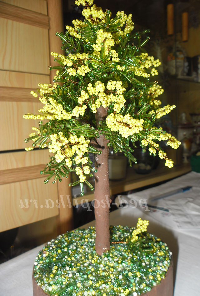 З бісеру можна зробити також мімозу в подарунок мамі або для прикраси інтер'єру.
