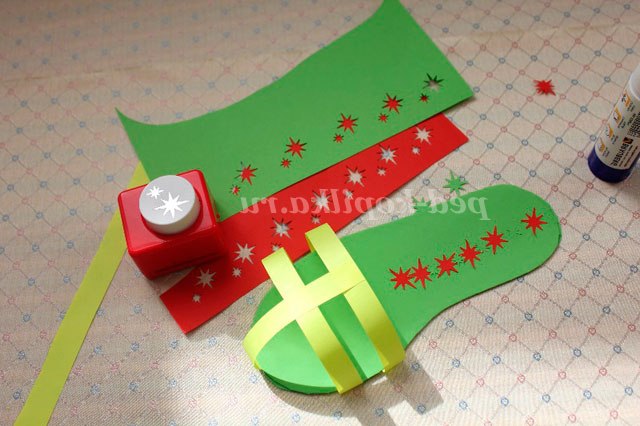 11. Наш тапочок майже готовий. Залишається тільки прикрасити, а для цього заготовте кілька прикрас з допомогою фігурних дироколів.