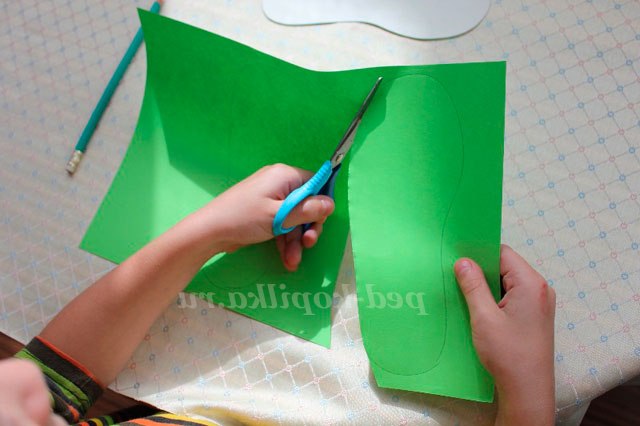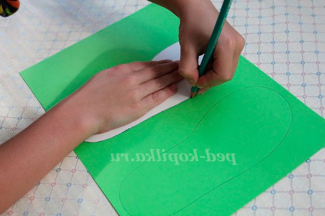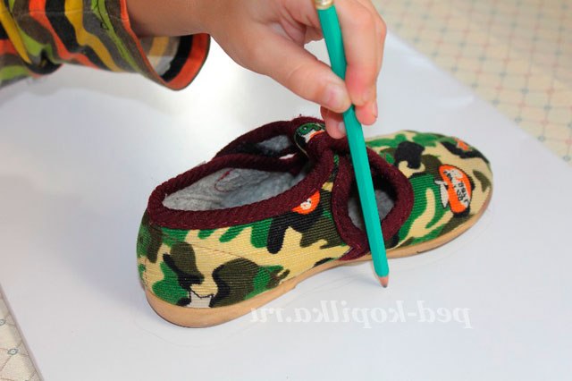 1. Перш ніж почати робити саморобку візьміть будь тапочок, переведіть його на щільний папір або картон і виріжте.