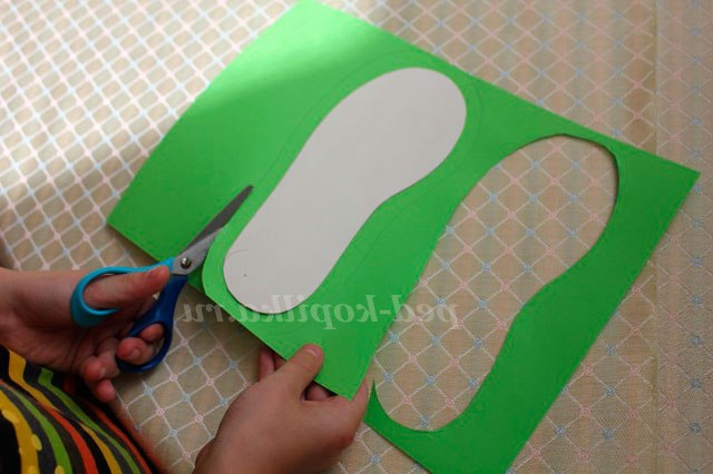 3. Потім один кольоровий слід вирізаємо по контуру і відкладаємо в сторону (це буде наша підошва), ...