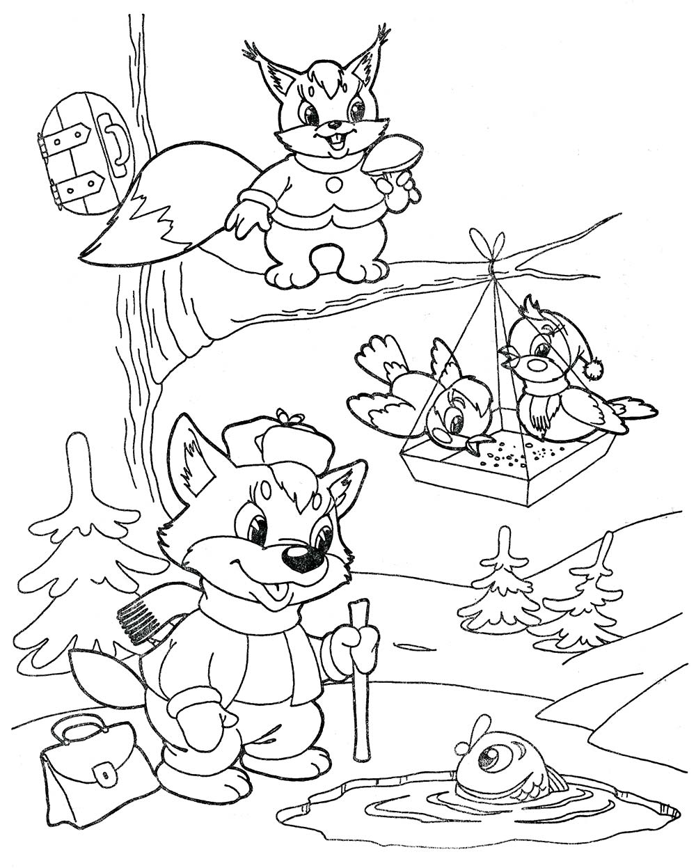 Розфарбуй картинку. Намалюй сніжинки.