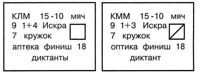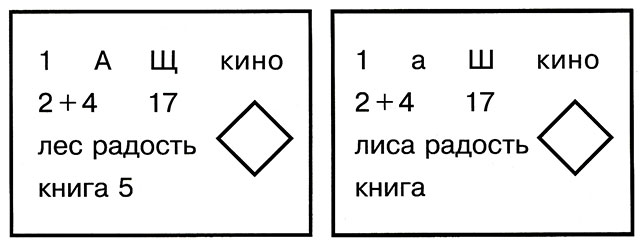 Порівнюючи картки, дитина повинна знайти вказану кількість відмінностей в знаках.