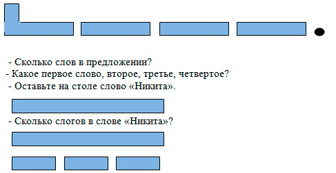 Діти поступово засвоюють такі поняття, як звук, склад, слово, речення; вчаться розрізняти голосні і приголосні, визначають ударні звуки. Ділять приголосні звуки на тверді і м'які, дзвінкі і глухі. Спочатку відбувається знайомство з голосними звуками (крім йотированных): а, і, о, у, и, е, потім з приголосними. Діти ділять слова на частини, визначають кількість слів у реченні та їх порядковий номер. Вводяться поняття: довгі, короткі і маленькі слова (прийменники), слова-предмети, слова-дії, слова-ознаки. Без введення понять діти вчаться складати речення з певним словом, з кількох запропонованих слів з використанням прийменників. Дошкільнята знайомляться з різними видами речень (оповідний, питальне, вигук); роблять звуковий аналіз слова за допомогою символів. У третьому кварталі діти проводять звуковий аналіз слова самостійно, знайомляться з буквою, знаходять її серед інших букв, визначають її схожість з навколишніми предметами. У зошитах в лінійку простим олівцем малюють друковані літери, що сприяє запам'ятовуванню букв і розвитку дрібної моторики руки. В кінці заняття діти складають і читають спочатку закриті склади (аг, ам, ап,), потім відкриті (га, ма, па).