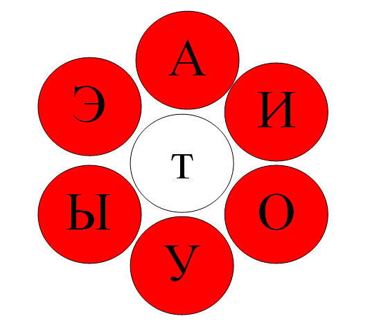 Діти читають «ромашці» спочатку зворотний склад, потім прямий: ат, от, іт, ут, ыт, пов, та, то, ту, ти, те.