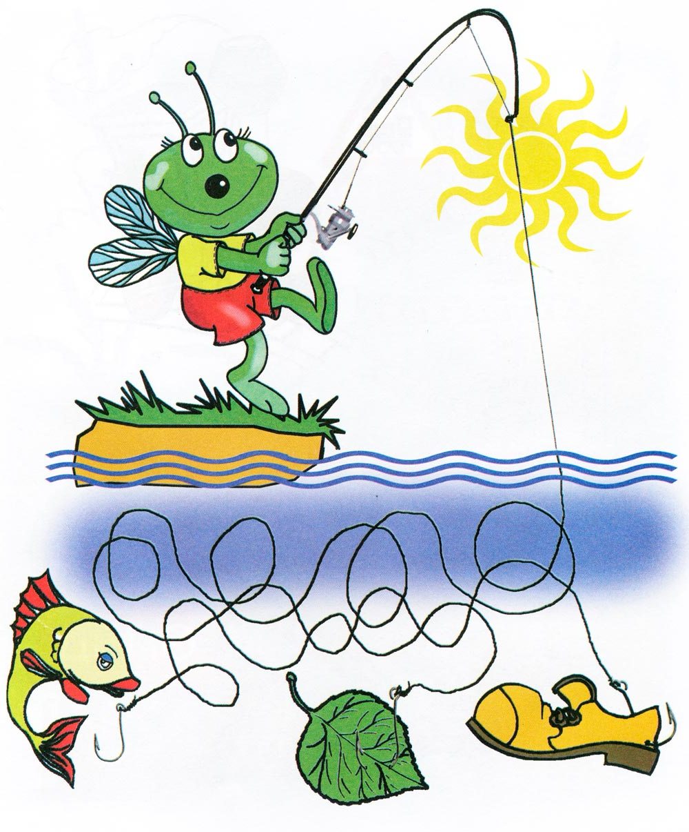 У Маленького Рибалки переплуталося волосінь. Що спіймав Рибалка на свою вудку?