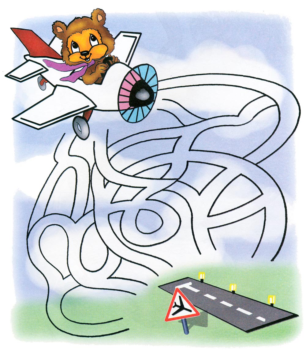 За яким маршрутом Мишко повинен вести літак, щоб потрапити на свій аеродром? Допоможи йому здійснити посадку, розфарбуй потрібний маршрут і літак Мишка.