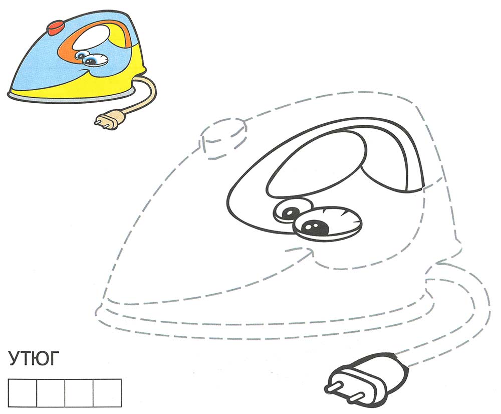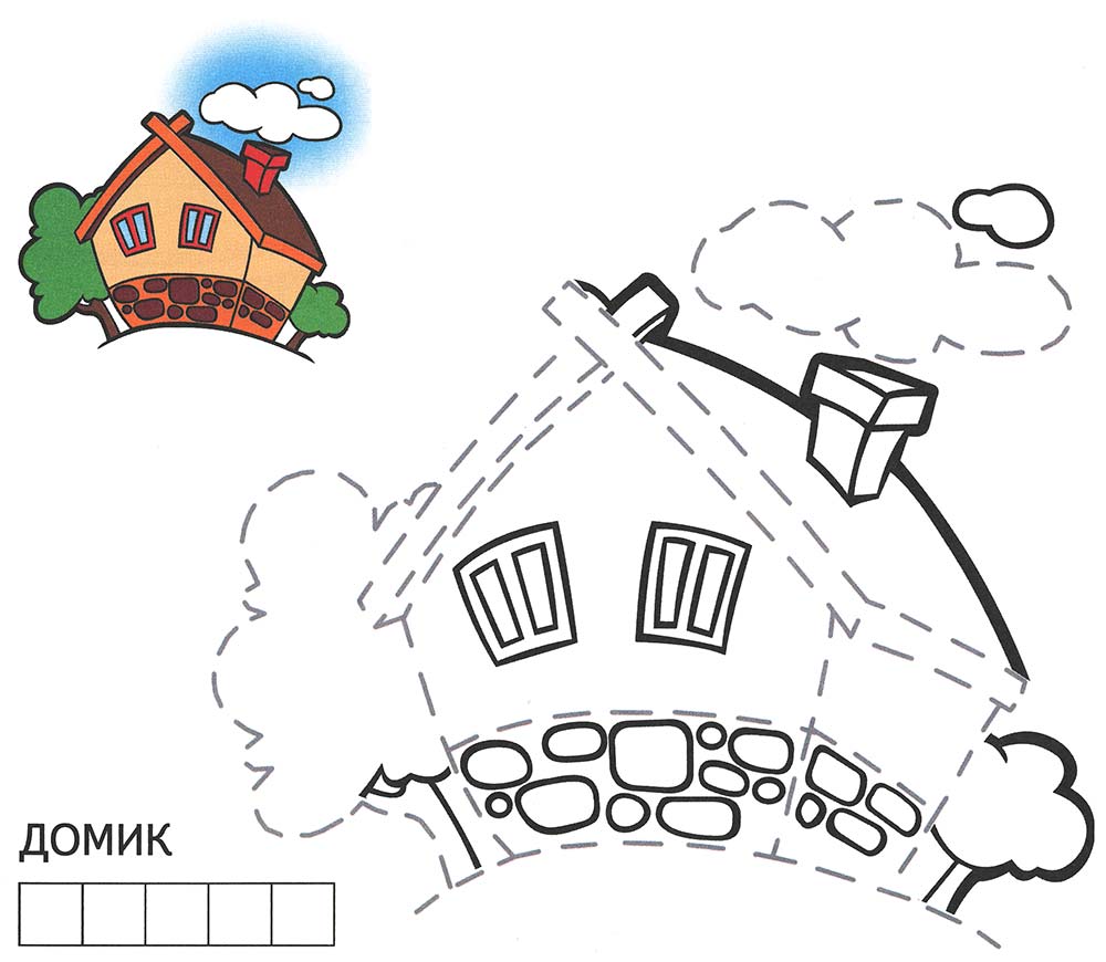 Завдання: З'єднай пунктири у суцільну лінію і розфарбуй картинку за зразком. Впиши у клітинки назва картинки.