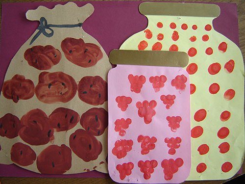 Прийняття дітьми ігрового вправи обумовлено інтересом до змісту відбиваного дії, а також до ритмічним повторам рухів, які можна використовувати для формування образотворчих навичок. Наприклад, «нанизуємо» намистинки на нитку, складаємо ягоди в банку для «заготовок» на зиму.