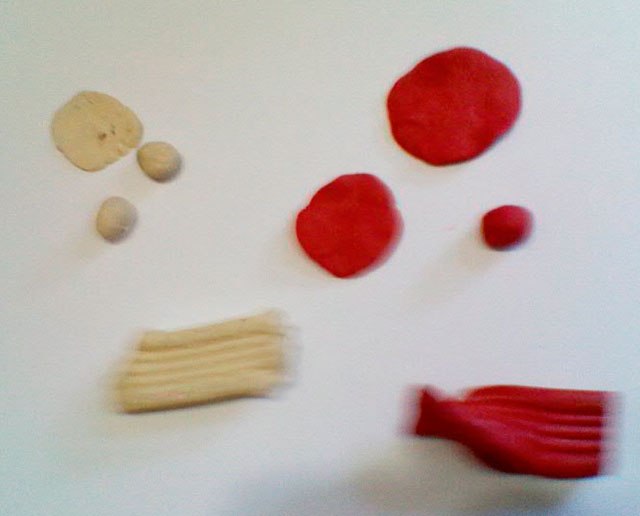 Рожевий (для ліплення рук, ніг, обличчя) = 1/5 червоного + 4/5 білого
