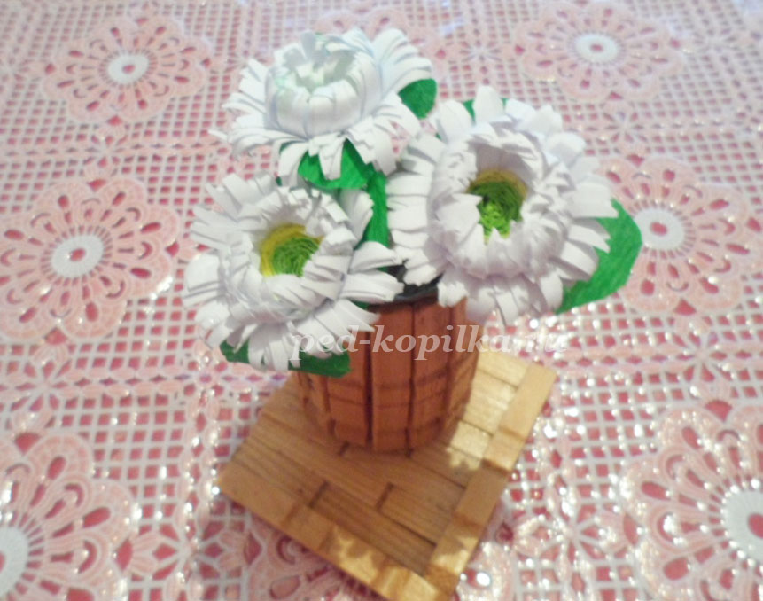 Цей ніжний букет хризантем виконаний в техніці квіллінг