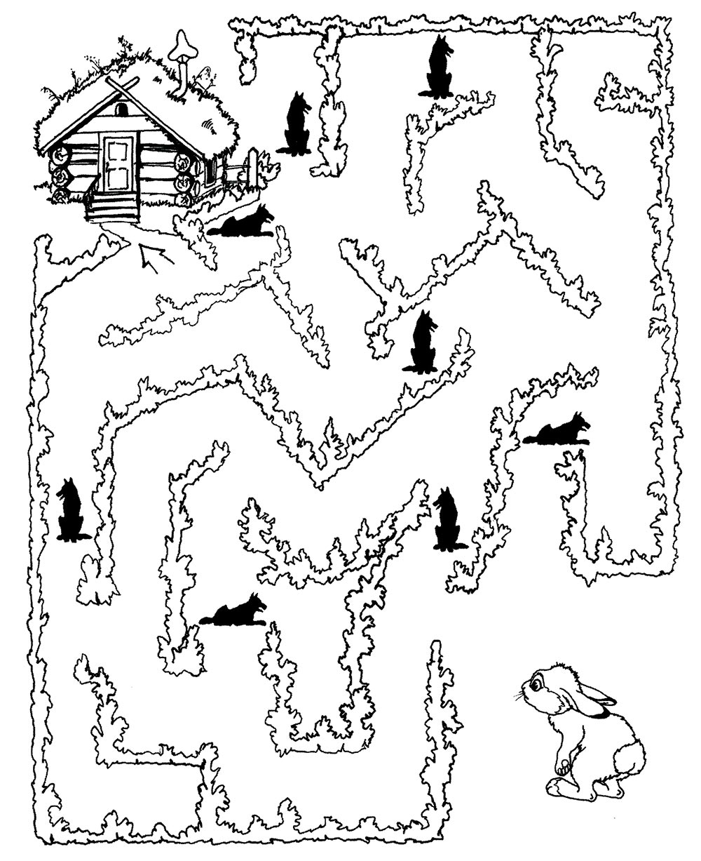 Допоможи зайчику повернутися додому, не потрапивши вовкові в пащу.