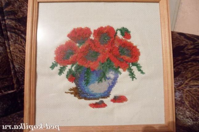 Ці маки, вишиті бісером, разом з віршем, для мами.