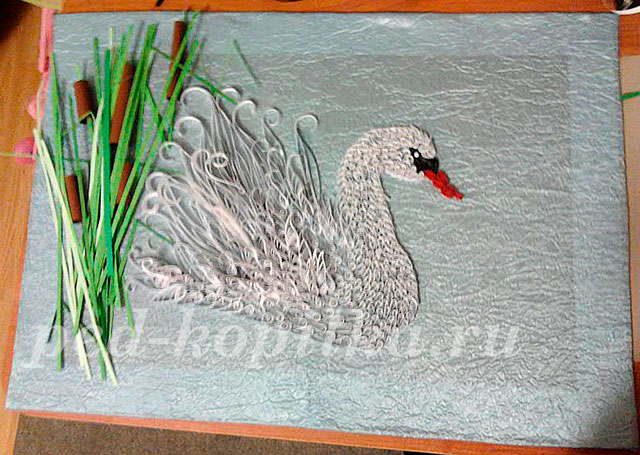 Картина в техніці квілінг "Лебідь на ставку"