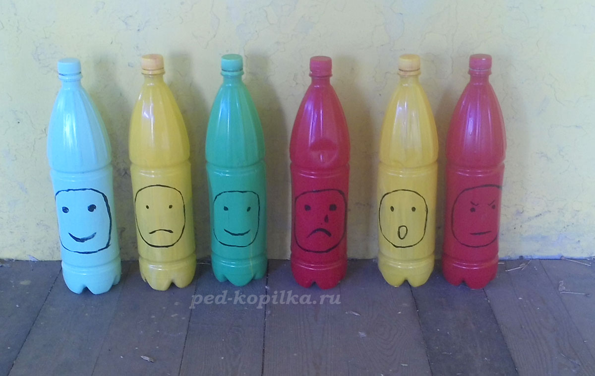 Веселі кеглі для боулінгу зроблені своїми руками із звичайних пластикових пляшок